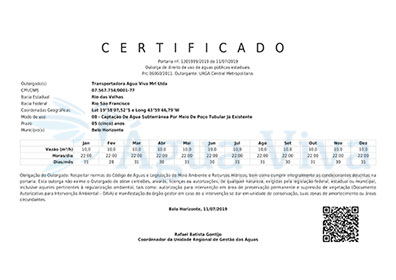 A Transportadora Água Viva possui poços profundos e Outorgados com o grau de potabilidade da sua água se enquadra naturalmente nos Padrões de Potabilidade exigidos pela Portaria 2914 de 12/12/2011.